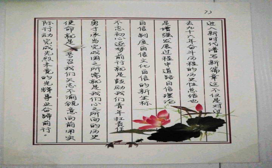 为了庆祝新中国成立七十周年,弘扬爱国主义精神,2019年6月10日至20日,校团委在团结里15号一楼举办了“庆祝新中国成立七十周年”书画展。此次共展出66幅作品,吸引了许多学生驻足观看。