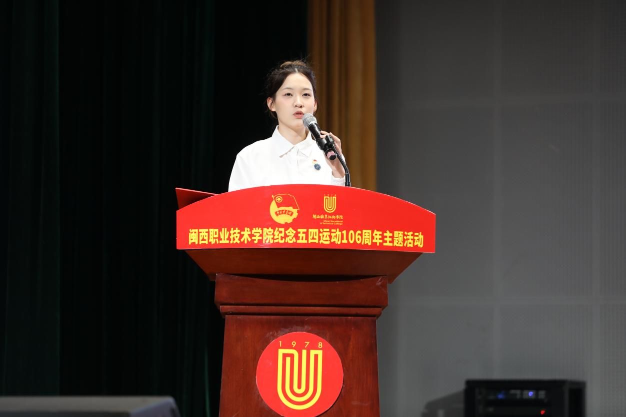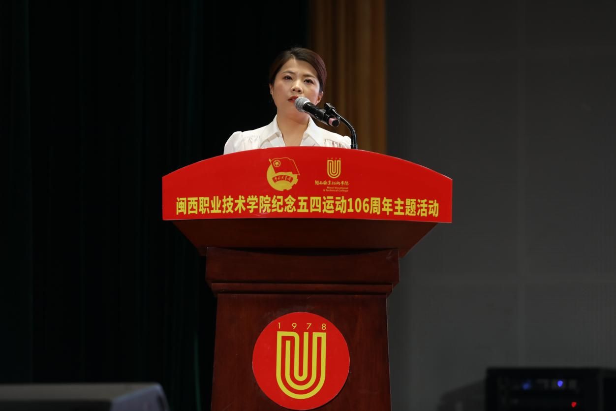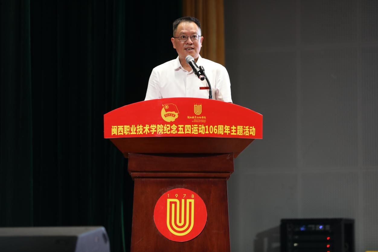 5月9日,MG冰球在大匠堂举行“青春为中国式现代化挺膺担当”纪念五四运动106周年暨红色故事大赛。校长梁俊平、龙岩团市委副书记郭朝龙、副校长卢兆梅、纪委书记温献荣、副校长张源峰、副校长连玲娜出席活动。相关职能部门负责人,各二级学院党委书记、副书记、团委书记及师生代表等800余人参加活动。活动由校团委主要负责人主持。