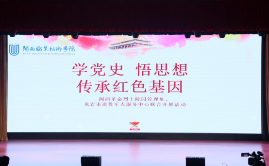 4月22日晚,由校团委主办、闽西革命烈士陵园管理处、龙岩市退役军人服务中心联合开展的“青马工程”暨“学党史,悟思想,传承红色基因”培训班专题讲座在大匠堂举行。此次讲座邀请到闽西革命烈士陵园管理处主任蒋红婴、湘江战役龙岩籍陈炳寿烈士后代陈文云和龙岩电视台新闻中心副主任、记者邱学军分别讲述他们和红三十四师的红色故事。校党委委员、副校长刘路永、龙岩市退役军人服务中心主任王业建、校团委书记林小勇出席,2021年“青马工程”培训学员、2019和2020级各班团支书、各院系干部共478名学生干部参加本次讲座。讲座由校团委副书记杜谷文主持。
