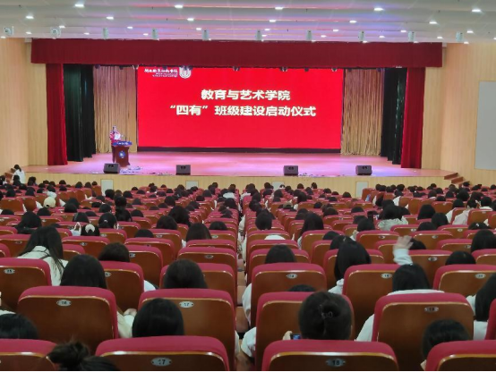教育与艺术学院于2月26日在大匠堂举行“四有”班级建设启动仪式,参加本次仪式的有党委书记李瑛、党委副书记曹熠城、班主任代表陈丽华等老师,以及21、22级全体同学。