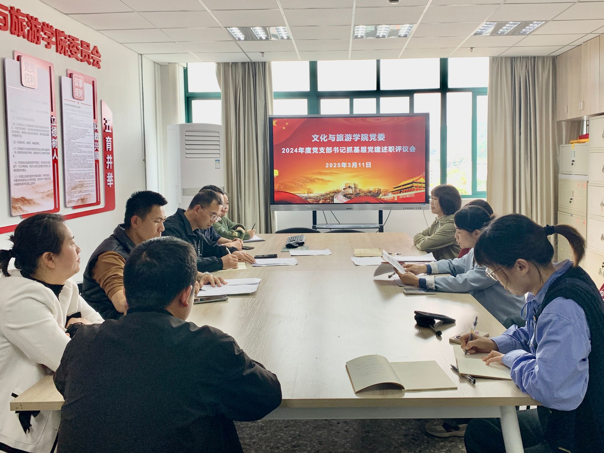 3月11日下午,文化与旅游学院党委召开2024年度党支部书记抓基层党建工作述职评议会,学院党委委员、各党支部支委参加会议。