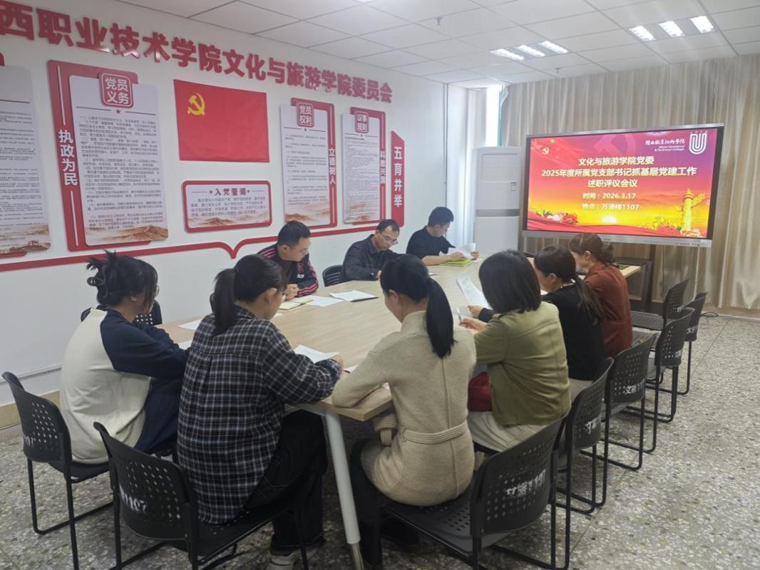 为压紧压实基层党建主体责任,全面提升党支部标准化规范化建设水平,3月17日,文化与旅游学院党委召开2025年度抓基层党建工作述职评议会议。学院党委委员、支部委员参加会议。