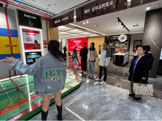 座谈后,文旅学院一行参观了星艺装饰的材料展示空间,进一步沟通了学生来此进行实践教学的流程细节,并探望和问候了在星艺装饰实习的毕业生。