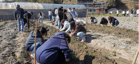 在省级乡村振兴试点村、龙岩市中小学劳动教育实践基地——竹岭村,新生们撸起袖子,拎起水桶,扛起锄头,完成了锄地、挖坑、种菜、浇水等一系列劳动任务,还动手体验了包水饺。通过乡村劳动实践,他们不仅体会到劳作的辛苦与快乐,认识了研学旅行新业态,还在村中自由体验和走访村民的过程中,感受到乡村振兴战略给乡村带来的发展变化,激发了对乡村的向往与热爱之情。