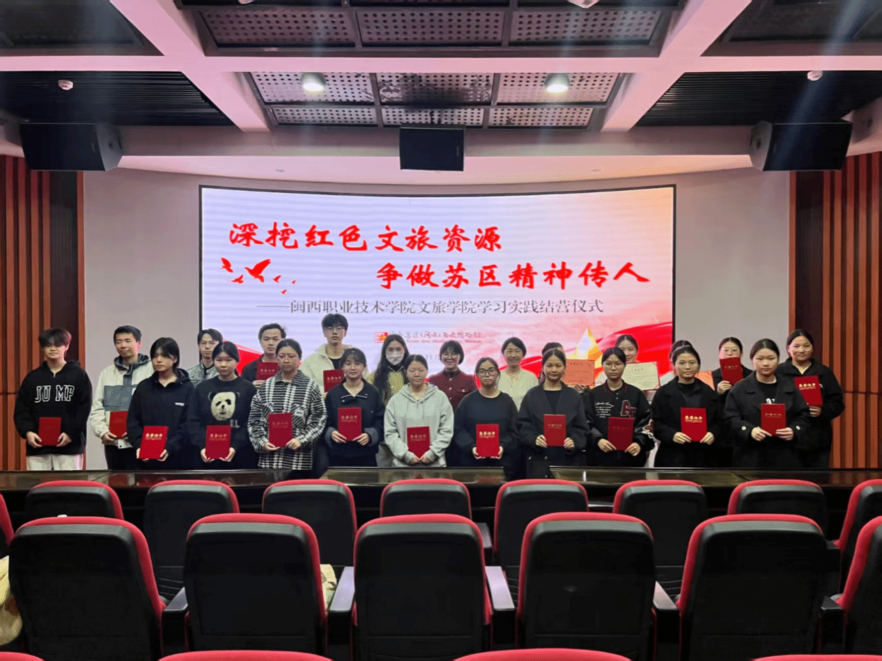 近日,2024 级旅游管理五年专 1、2 班 64 名学子,在龙岩市博物馆、中央苏区(闽西)历史博物馆、龙岩博物馆三大文博场馆开展的为期两周教学跟岗实习圆满收官。此次实习以深化产教融合、传承红色文化为核心,通过馆校协同育人模式,让学生在沉浸式实践中夯实专业技能,在红色熏陶中坚定理想信念,取得了良好的教学效果与社会反响。
