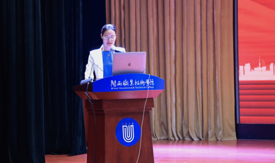 付建丽老师作为教师代表发言,“想要成功先用功”、“今天不放弃、明天创奇迹”,对新生如何成长为一名“一技在手的新时代阳光工匠”进行了体会分享。