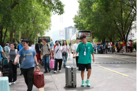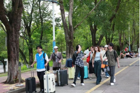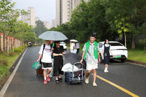 同时,对于乘坐动车抵达的新生们,学院也安排了贴心的接送服务。大巴车如桥梁般连接动车站与东南门,而下车瞬间,文旅学长学姐们如同春风拂面,温暖相迎。他们忙碌而有序地帮助新生们搬运行李,一路陪伴直至大本营。