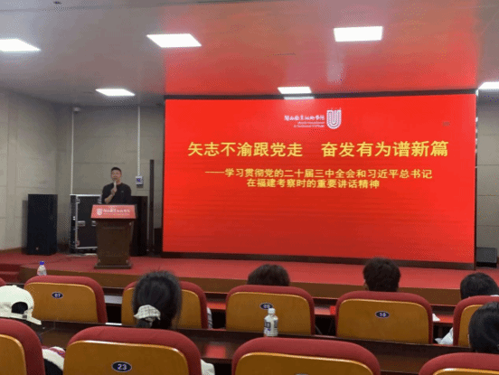 为深入贯彻落实党的二十届三中全会精神,使学生更加深入地理解和掌握党的最新理论成果,提高政治理论素养和思想认识水平。2024年12月25日下午,文化与旅游学院于卫培楼3D实训室开展学习贯彻党的二十届三中全会精神和习近平总书记在福建考察时的重要讲话精神专题宣讲会。入党积极分子、入团积极分子、学生代表共100余人参加。