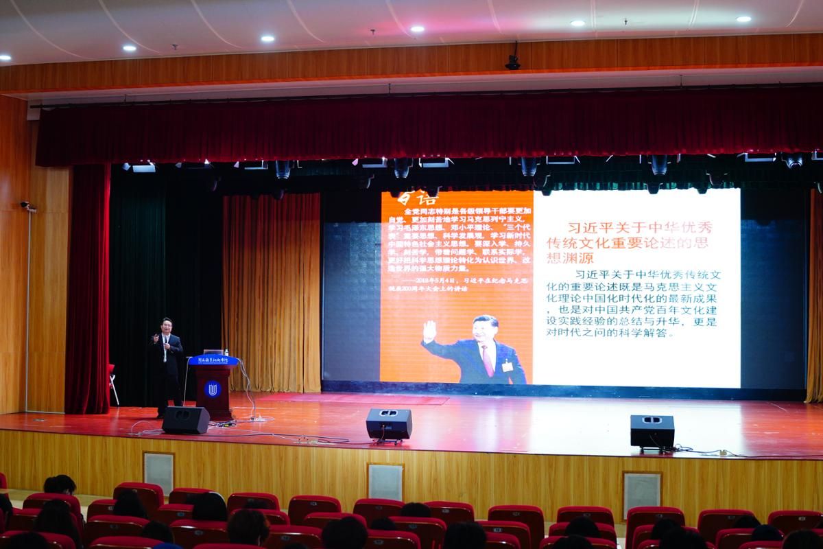 3月26日,文化与旅游学院特邀永定区委党校副校长江宇贤为2023级、2024级500余名学生举办“客家家训文化与新时代青年家风建设”文化讲座,通过挖掘客家传统文化中的育人智慧,构建文旅青年学子思想引领新范式,学院党委副书记石颖主持。
