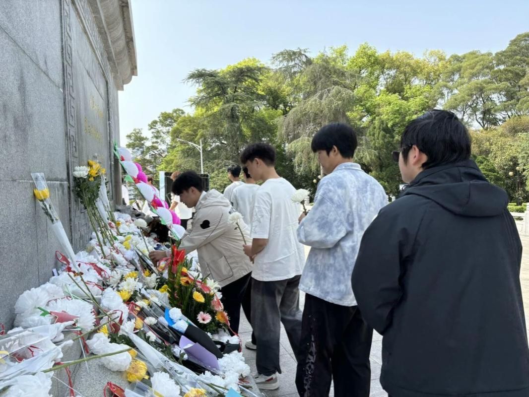 默哀仪式后,师生们缓步走向烈士纪念碑,敬献小白花,瞻仰纪念碑并绕行一圈,表达对先烈的哀思与缅怀之情。