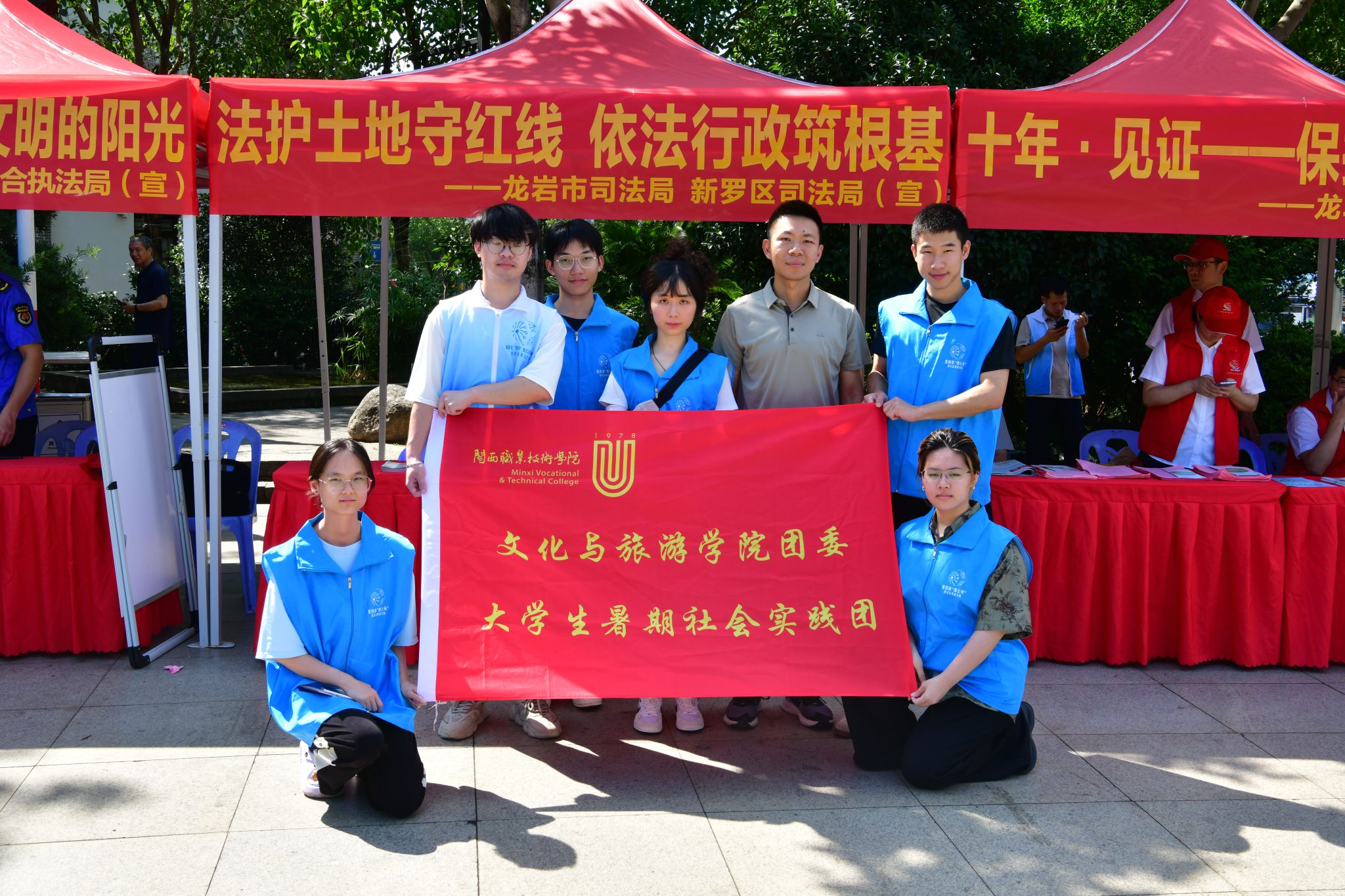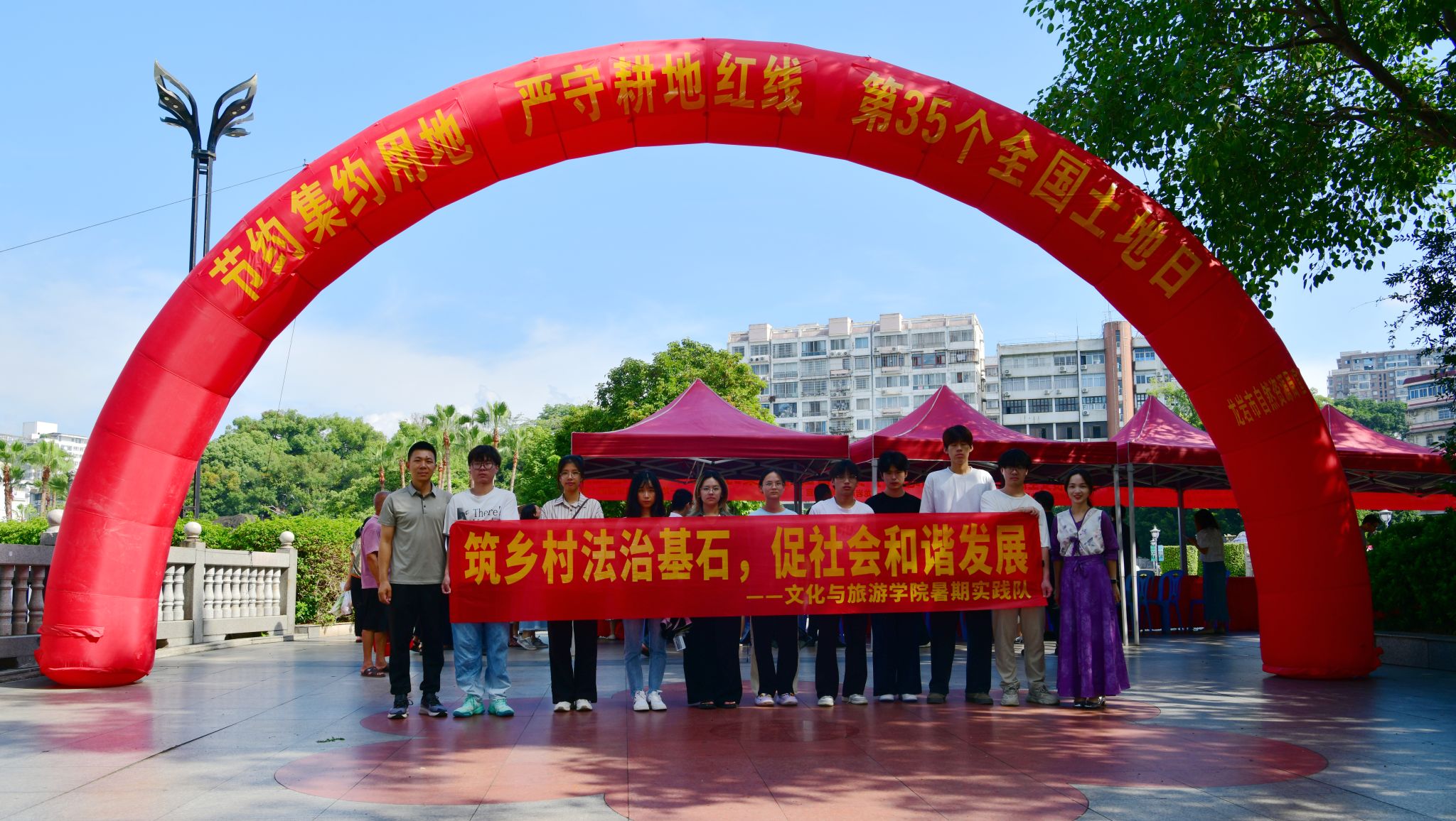 在第35个全国土地日来临之际,文化与旅游学院的同学们走出校园,来到热闹的龙岩市街心花园广场,协助龙岩市自然资源局、龙岩市司法局、新罗区司法局开展了一场以“筑乡村法制基石,促社会和谐发展”为主题的土地法宣传摆点活动,用实际行动为法治建设贡献青春力量!