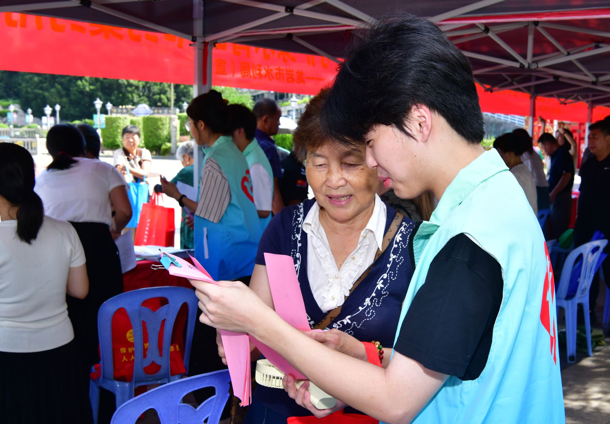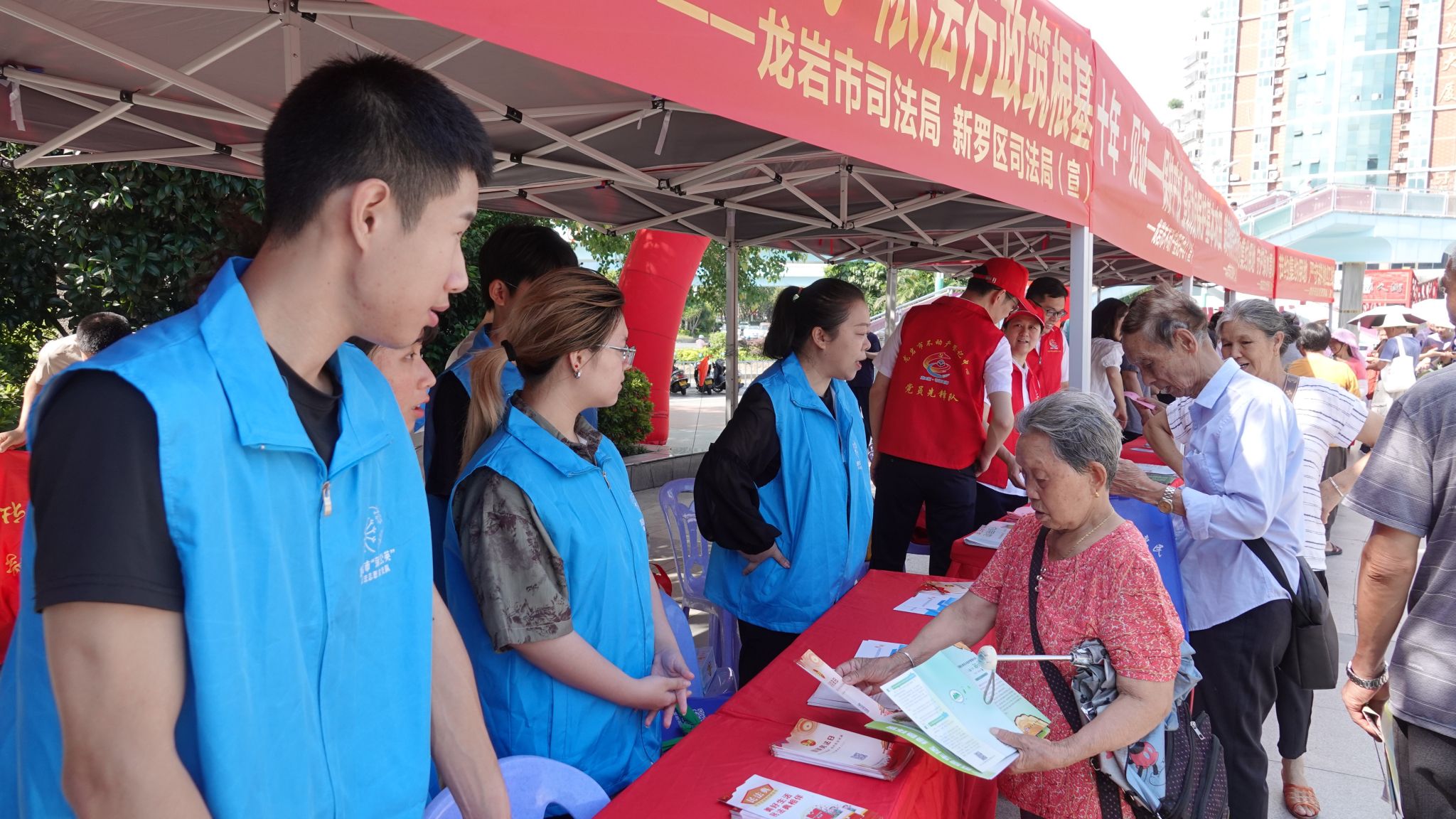 摊位上整齐摆放着各类宣传资料,有图文并茂的土地法知识手册、生动有趣的案例宣传单页,还有醒目的宣传海报,上面详细介绍了土地法的重要条款和相关政策。