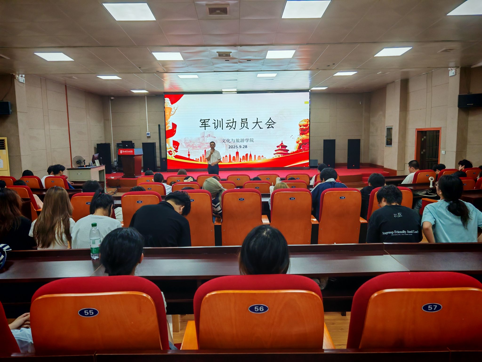 为强化新生国防意识,锤炼意志品质,扎实推进军训工作有序开展,9月28日晚,文化与旅游学院在3D实训室隆重召开2025级新生军训动员大会。学院党委负责人、思政负责人、院两委学生干部、2025级新生班委和宿舍长共计120名学生参会,共同开启军训征程。