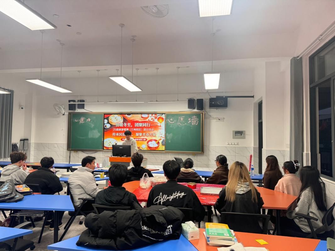 为深入学习贯彻党的二十届四中全会精神,弘扬中华优秀传统文化,丰富团员青年精神文化生活,文化与旅游学院2025级旅游管理(汀州校区)团支部,于2025年12月19日精心组织开展“情暖冬至,团聚同行”主题团日活动,以四大特色环节串联全程,丰富精神文化生活、凝聚奋进力量,让团员青年在沉浸式体验里厚植文化自信,在互动协作中增进彼此情谊。