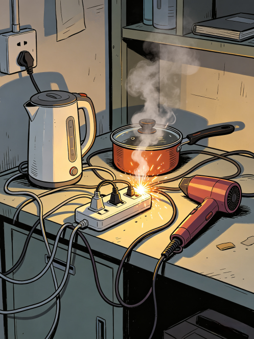 热得快、电饭煲、电热毯、电暖器、卷发棒、电煮锅……这些看似“提升生活品质”的电器,其实是宿舍消防安全的“头号敌人”。宿舍线路设计负荷有限,通常仅为照明、电脑、手机充电等低功率设备准备。使用大功率电器会导致线路过热、绝缘层老化,甚至短路起火。学校明令禁止的电器,一律不带入宿舍。