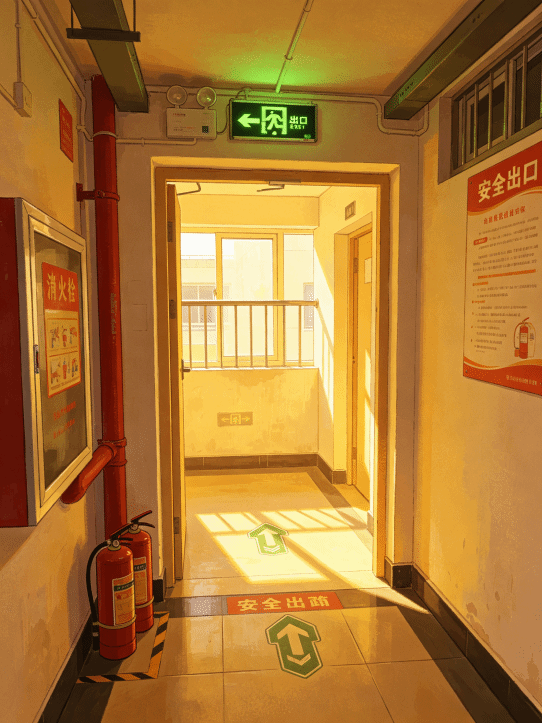 六、熟悉自己宿舍楼的安全出口位置——通常至少有两个,确保畅通无阻;