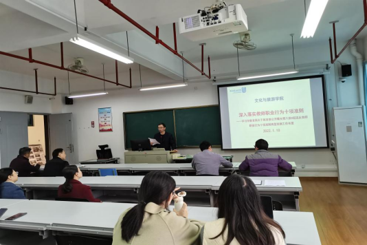 评价教师队伍素质的第一标准是师德师风,良好的职业道德是教师职业活动最基本的要求,教师是学生增长知识和思想进步的导师。1月10日上午,文化与旅游学院在实训楼1010开展学习开展深入落实教师行为十项准则——暨学习市教育局关于开展教育部公开曝光第八批8起违反教师职业行为十项准则典型案例警示教育学习活动。