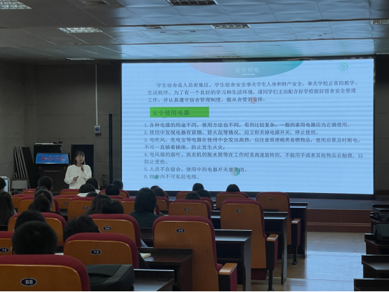 在日常安全教育管理方面,余倩老师有针对性地从宿舍安全、财产安全、交通安全、网络安全和疫情防范安全等五个安全注意事项进行强调,要求同学们在校期间自觉遵守纪律,在学习生活工作中时刻将安全牢记于心。