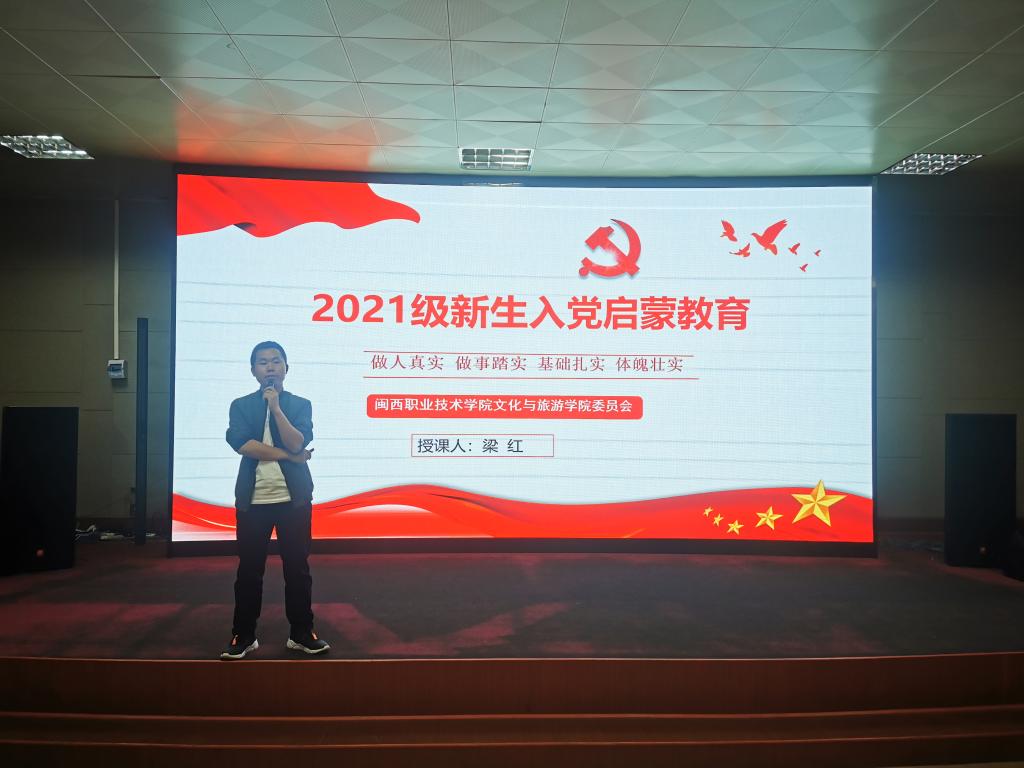 为增进新生对党的基本知识的理解和认识,引导新生正确看待入党问题,详细了解入党流程,进一步提升新生的政治思想觉悟,文化与旅游学院于10月21日晚7点在3D实训室面向2021级新生开展了入党启蒙教育。