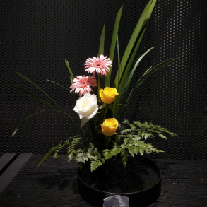 比赛设碗花、盘花和筒花三个赛项,选手们自行选用玫瑰、桔梗、小菊、向日葵、百合等花材,“一花一世界、一叶一乾坤”,精心的构思加上别具一格的设计,虽由人作,却宛自天开,构筑出一幅幅美丽的作品。