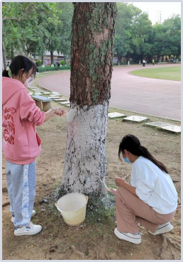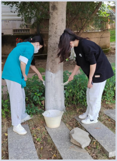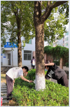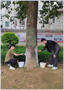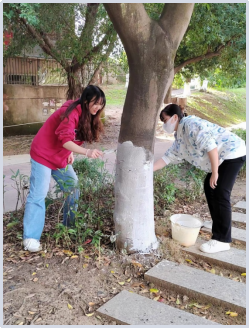 根据《关于印发<MG冰球突破官网学生劳动教育课程实施方案(试行)的通知>》(闽西职院政[2021]61号)文件精神,为深入贯彻习近平新时代中国特色社会主义思想,落实《国家职业教育改革实施方案》文件精神,进一步推动劳动教育、优秀传统文化与职业教育深度融合。文旅学院风景园林设计专业以此为契机,在《园林植物栽培与养护》课程中主动与学校物业对接,开展“树木涂白”校园养护劳动教育实践项目,丰富专业的劳动内涵。