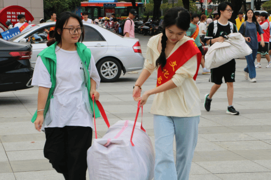 美丽的校园里处处活跃着师生志愿者的身影。在校道上,身穿“红马甲”的志愿者们,从新生手中拎过一件件行李,一趟趟来回穿梭在人群中,志愿者的一声欢迎、一个微笑、一次讲解,点点滴滴汇聚了他们的热情与期待,从校门口到学生公寓都记录着他们忙碌的身影。“红马甲”在校园中形成一道靓丽的风景线,志愿者们热情暖心的服务成为文旅院一张对外的生动名片。学生志愿者们引导新同学前往报到区报到注册,并为新生们答疑解惑。在宿舍区,师生志愿者热情帮助新生同学们搬运行李,整个迎新现场秩序井然、热闹欢腾。报到现场,熙熙攘攘、人影幢幢,随处可见忙碌而轻快的注册身影,报到的新生们手拿注册资料办理入学手续,班主任、老师和志愿者面带微笑,热忱接待,一一解答新生的疑惑。