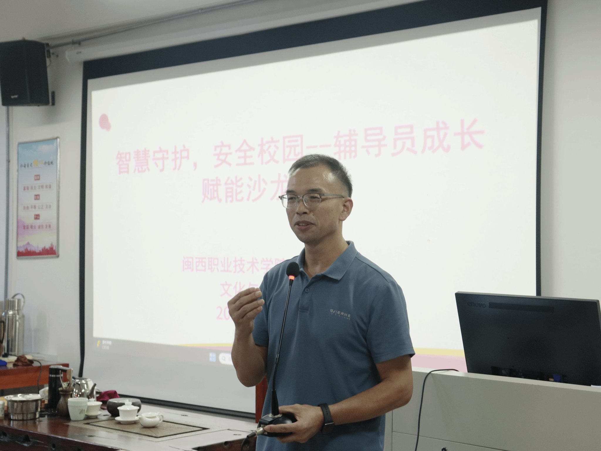 活动即将结束,连玲娜副校长分享了学生突发应急典型案例,她强调:“安全是校园的基石,是每一位师生幸福生活的保障。希望辅导员们能将今天学到的安全知识与传统文化相结合,创新教育方式,让安全教育更加生动有趣,深入人心。”学工曹处长指出:“安全无小事,责任重于泰山。辅导员作为学生的引路人,更要时刻绷紧安全这根弦。今天的沙龙活动,不仅是一次知识的盛宴,更是一次心灵的洗礼。希望大家能将这份收获转化为实际行动,将安全理念融入日常教育,共同为闽西职院的学子们撑起一片安全的天空。”