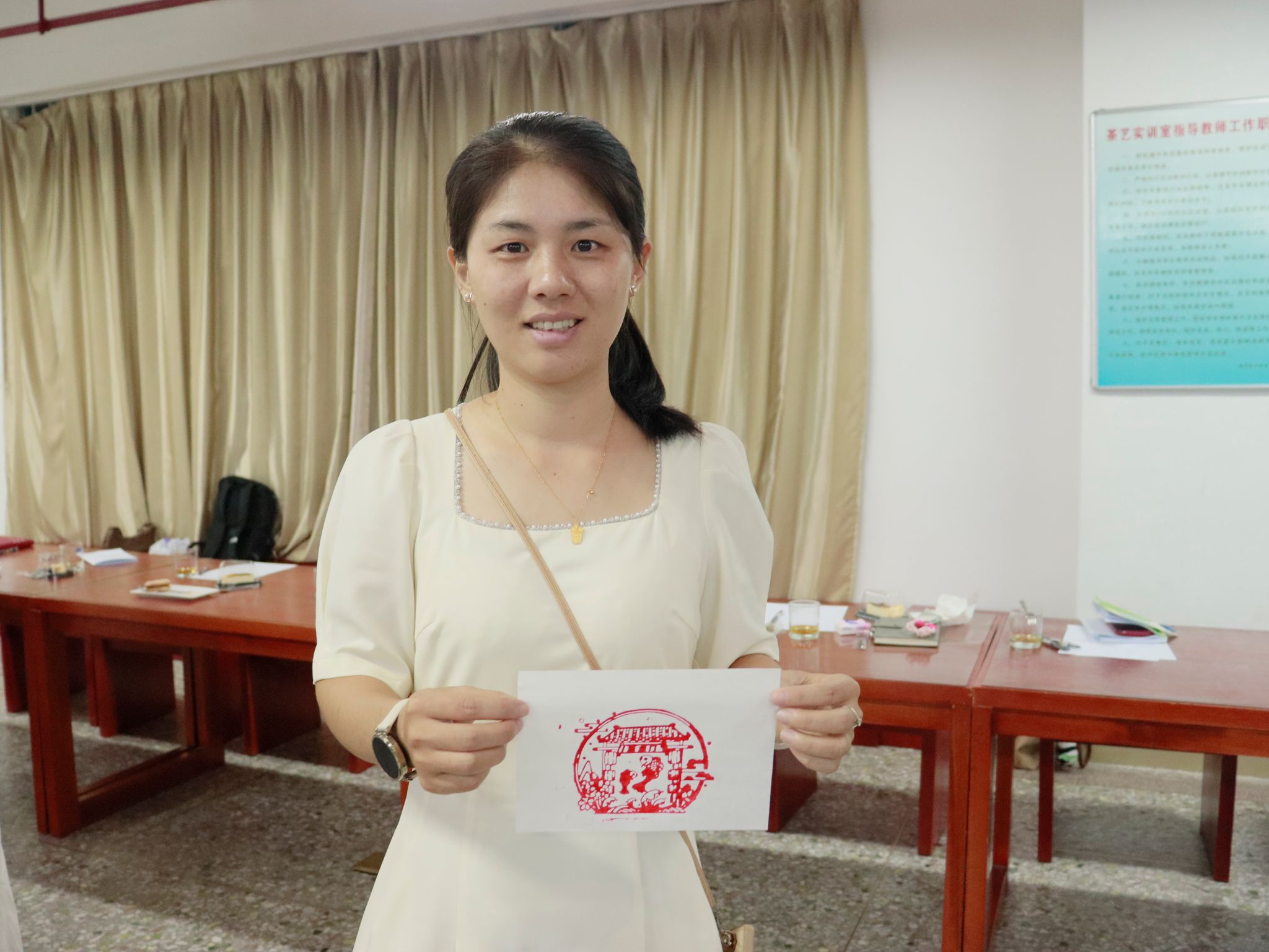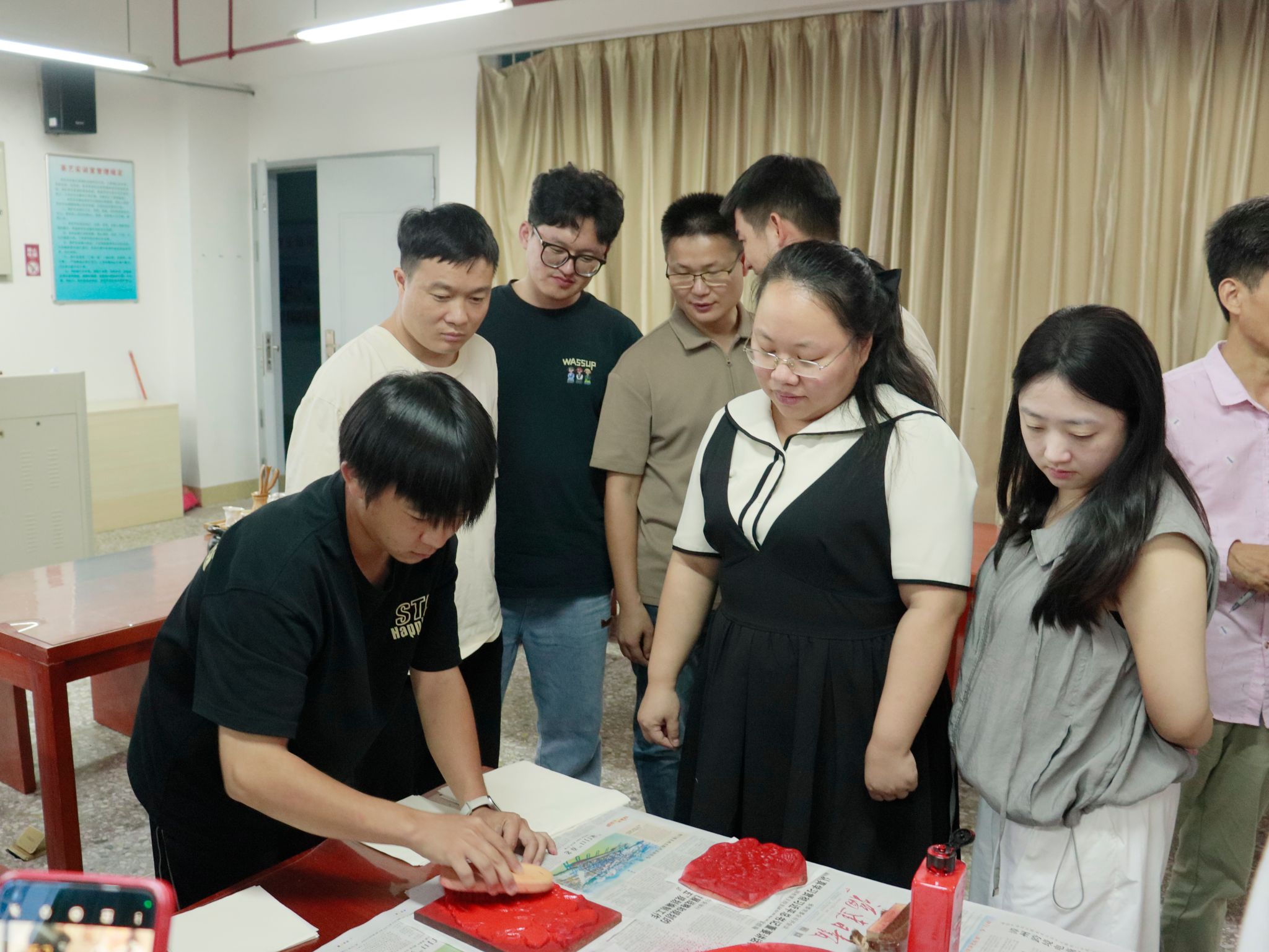 茶艺表演通过“温杯、投茶、注水、出汤”等标准化流程,不仅展示了中国茶文化的礼仪规范,更隐喻了安全教育需遵循“预防为主、规范操作、及时响应”的治理逻辑。辅导员们在雕版前,将自己喜欢的图案印入宣纸,笑谈到:“这雕版如学生工作,容不得半点偏差!”众人会心一笑,墨香中悟透安全教育的匠心。