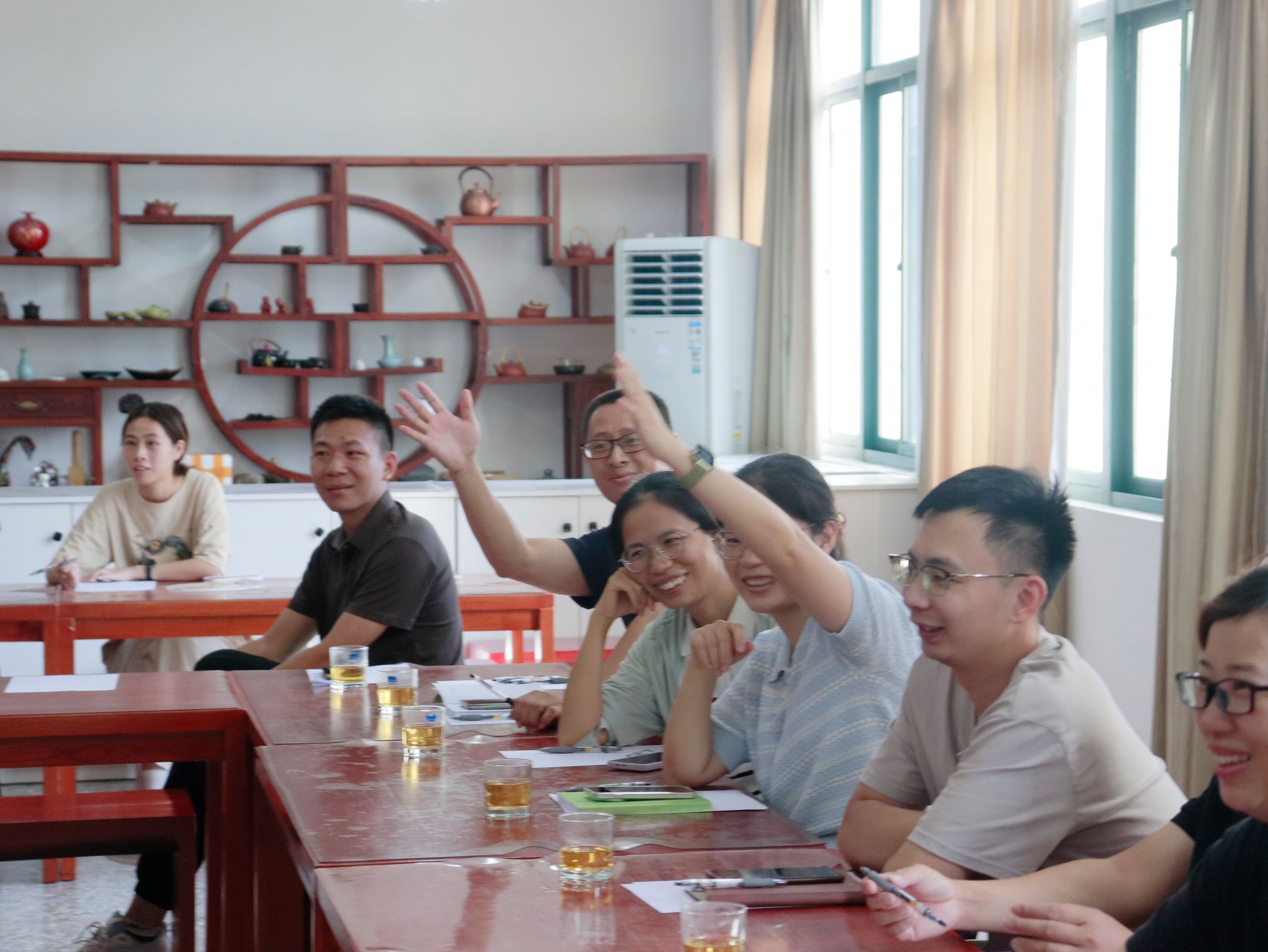 辅导员们在茶香中放松身心,通过“成语接龙”小游戏迅速拉近距离。你一言我一语,成语如茶般醇厚,接续间尽显智慧与默契。偶尔卡壳?别怕,家乡话介绍美食环节瞬间点燃热情,从龙岩清汤粉到龙岩酥肉,味蕾与心灵的双重旅行就此开启!