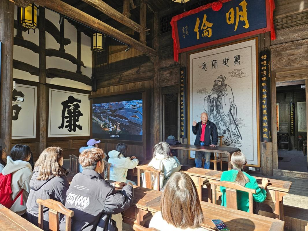 卧龙书院里面的小讲堂,闽台文旅康养研究院的李运奎教授给大家分享了客家文化的传承小故事,黄磊老师介绍了国学的博大精深和文化应用,张秀华老师分享“卧龙”名称的由来。