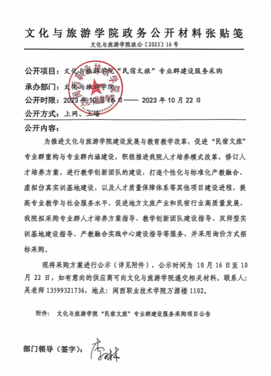 上一条:民宿文旅专业群建设服务采购结果公示