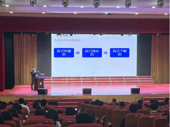 会上,詹杨男分享自己的就业心得,从就业方向的角度出发,他建议同学们应选自己所热爱所擅长的就业岗位,并展现出自己的才华、拓宽视野;从自身角度出发,引领同学们立足实际、找准定位、踏实奋斗、聪明能干;最后,他分享了自己在就业过程中的困难与坎坷,也传授了如何克服挫折、实现目标的宝贵经验,鼓励学弟学妹们保持学习的热情,勇于尝试,不断探索适合自己的职业道路。