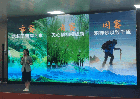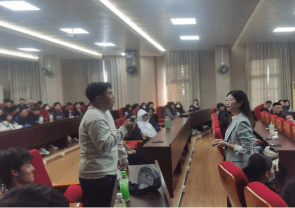 本次讲座特邀2023年全国导游大赛20强、铜奖获得者赖雅珍进行导游从业经历以及比赛经验的分享。赖雅珍老师从“选择旅游管理专业的理由?”、“你心中的导游形象?”“你未来的职业选择?”这三个问题入手,与同学们进行良好的互动。她还通过分享自己的专业学习经历、从业经历和比赛经历,展示了一个旅游人的成长历程,传授了“积跬步以至千里”的人生经验,还鼓励同学们向梁芷芮(从普通中职学生成长为2023年全国导游大赛20强、铜奖获得者)学习。