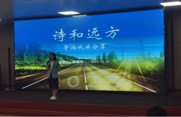 11月21日下午,文化与旅游学院旅游管理专业在3D导游实训室举办《诗与远方——导游从业分享》新生行业认知讲座,学院师生100余人参加。