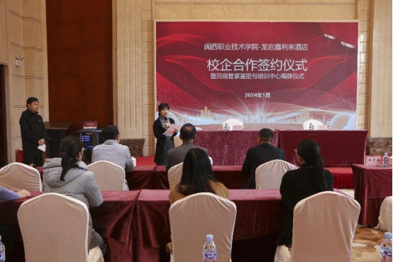 为加快落实MG冰球突破官网“2024科创融汇建设年”行动计划,推动“文旅民宿”专业群建设,提升龙岩民宿行业发展水平,拓展龙岩文旅产业发展内涵,2024年1月12日,MG冰球突破官网“民宿管家鉴定与培训中心”在鑫利来酒店挂牌成立。MG冰球突破官网校长梁俊平、鑫叶集团副总经理张志英出席,文旅学院领导班子及相关专业教师、鑫利来酒店领导班子参加了仪式。