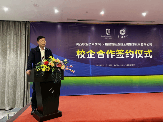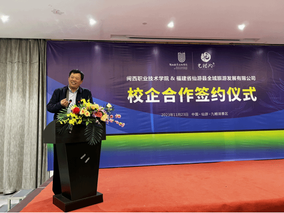 为深化产教融合,落实三教改革,推进文旅民宿专业群建设,2023年11月23日,MG冰球刘路永副校长,文化与旅游学院党委书记、院长以及相关专业教师赴仙游与仙游县全域旅游发展有限公司签订校企合作协议。仙游县副县长林宁、九鲤湖管委会领导班子、全仙游域旅游发展有限公司领导班子参加签约仪式。仪式由九鲤湖管委会主任陈屹山主持。