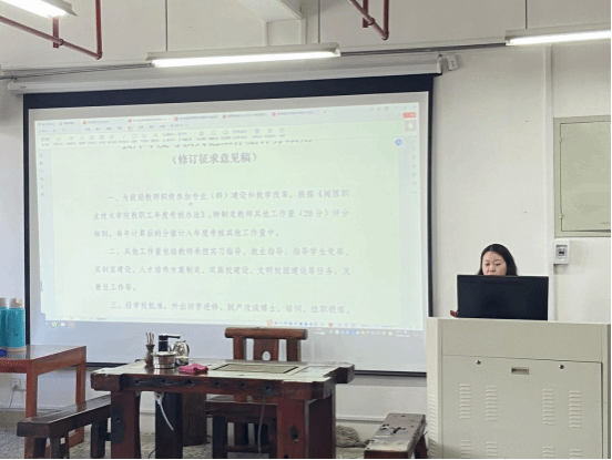 会议伊始,分管相关工作副院长对《文化与旅游学院师生竞赛管理办法》、《文化与旅游学院教师年度考核其他工作量评分细则(修订)》、《文化与旅游学院教学质量评价实施细则(试行)》等三个办法进行了详细说明和解释,让教职工们对其内容和意义有了清晰的认识。