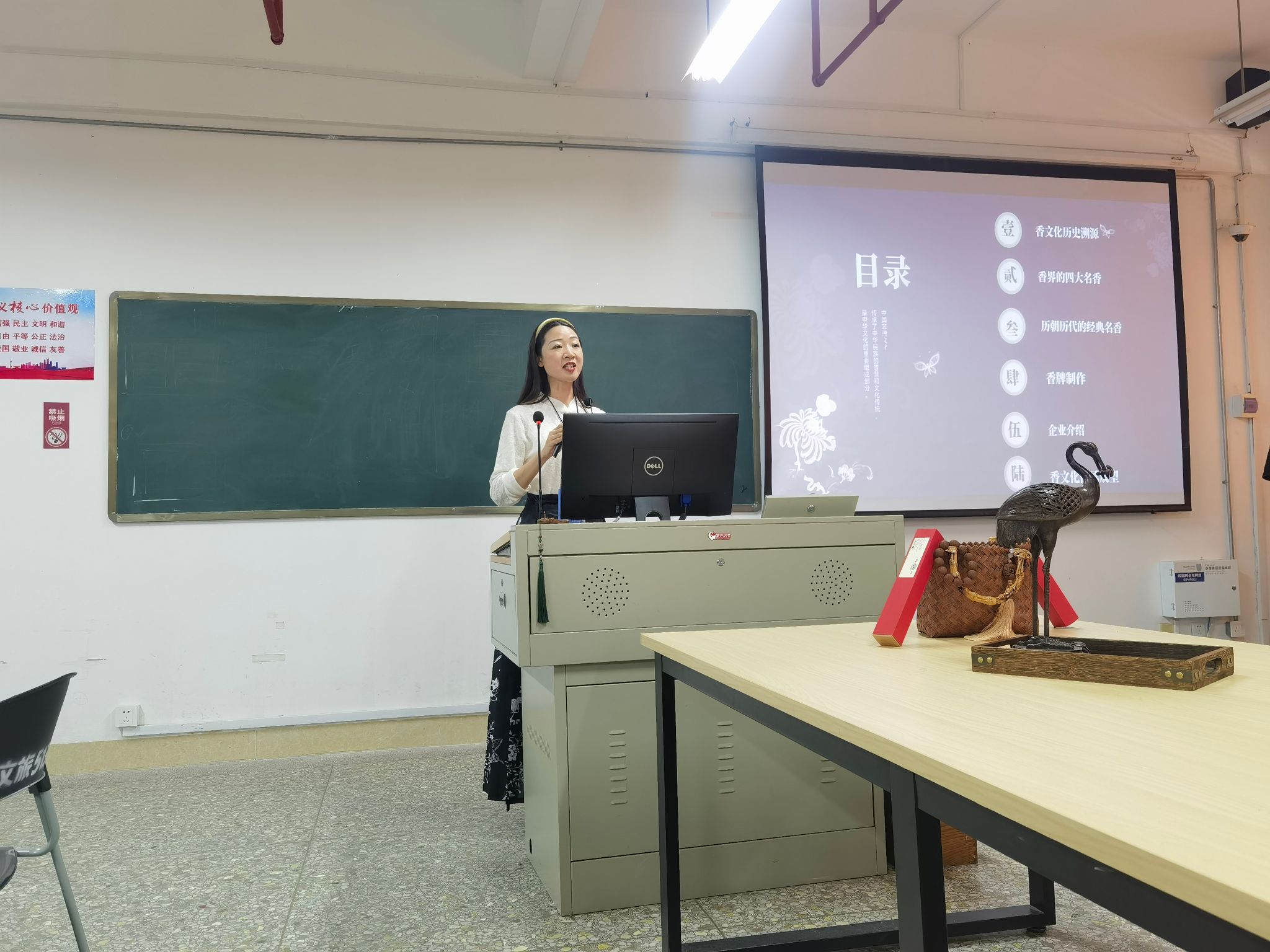 钟桂芳老师用生动的语言和丰富的图文资料向同学们介绍了中国传统香文化的历史渊源、发展脉络及其在生活中的应用。她从香料的种类、香道的礼仪讲到香文化在古代文人雅士生活中的重要地位,让同学们对香文化有了初步的了解。随后,钟老师带领大家进行了一段短暂的冥想体验,感受香道带来的宁静与平和。
