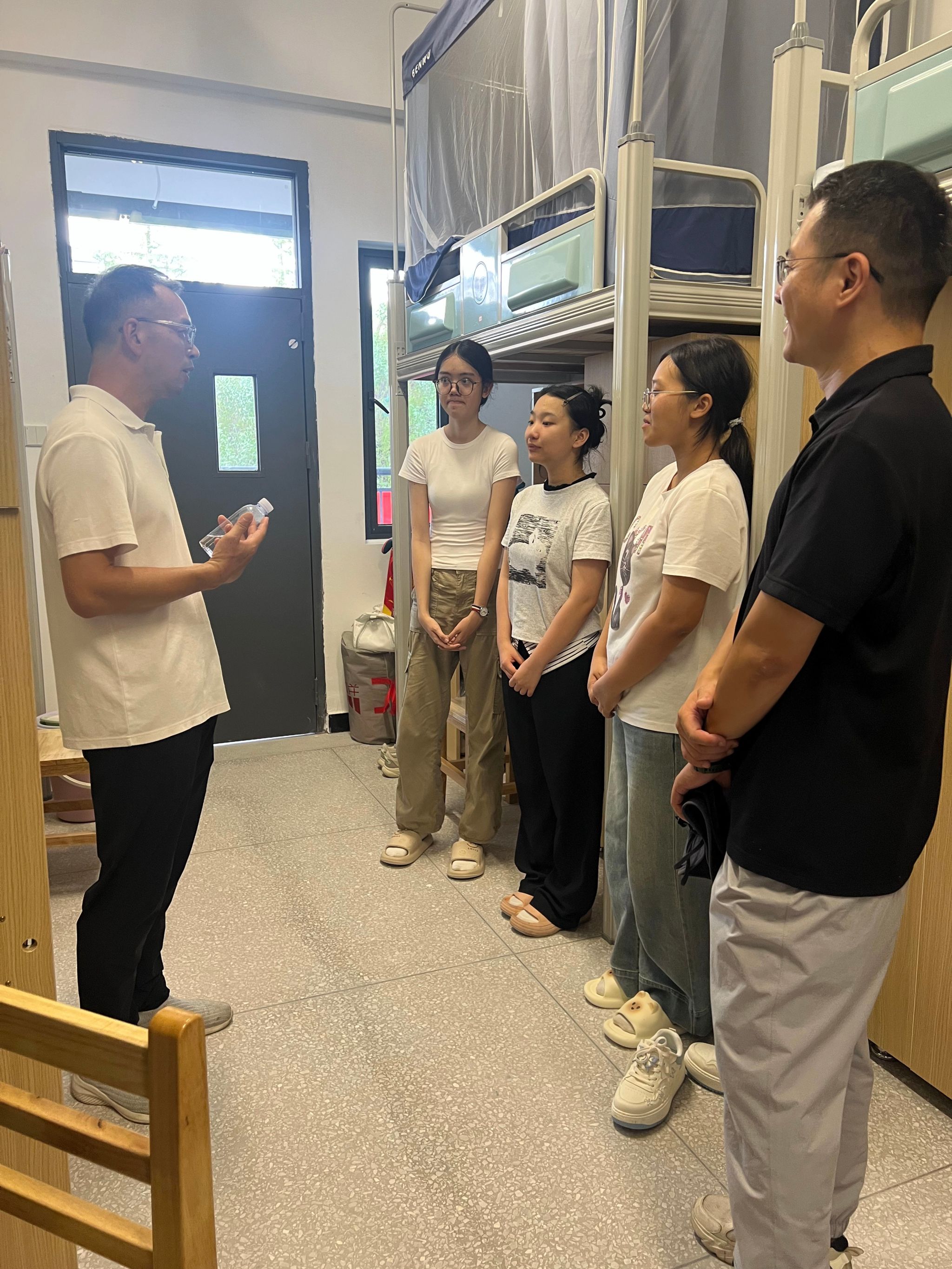 7日,学院党委负责人及教学工作负责人深入学生宿舍区,重点查看宿舍安全、卫生环境及生活设施配备情况,并与新生亲切交谈,详细询问入学适应情况、生活需求及未来规划。