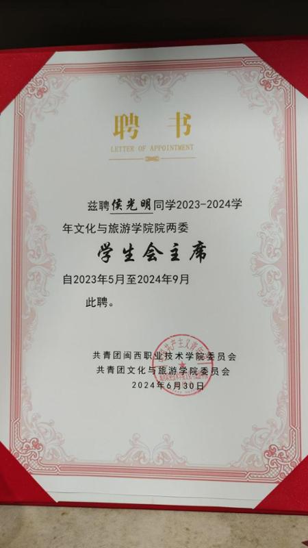 侯光明,男,汉族,共青团员,MG冰球突破官网文化旅游学院建筑室内设计专业2022级学生。他以“实践铸就真知”为信念,曾获2022至2023学年度国家励志奖学金,第一届福建省职业技能大赛“商品展示技术”赛项优胜奖,第四届“创业龙岩”三等奖,第五届“创业龙岩”三等奖,龙岩市职业院校学生创新创业决赛共三枚铜奖,第六届中国创意创业创新大赛龙岩市级选拔赛三等奖等。