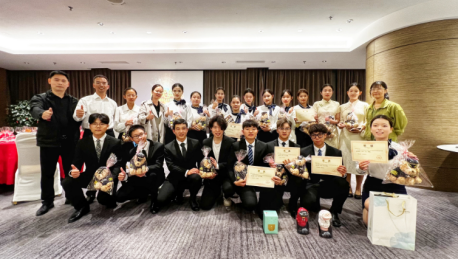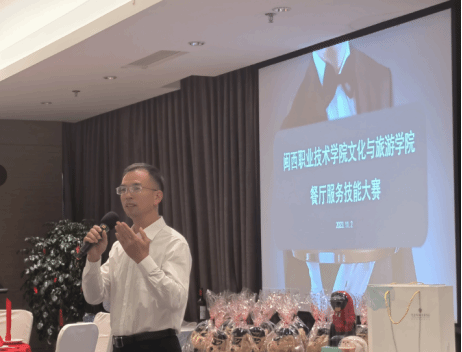 文化与旅游学院党委书记为获奖学生颁发了奖状与礼品,鼓励酒店管理与数字化运营学生在专业学习上,脚踏实地,精耕细作。本次活动也得到了龙岩佰翔京华酒店和厦门磐基希尔顿酒店的大力支持,“餐厅服务”技能大赛获得圆满成功。