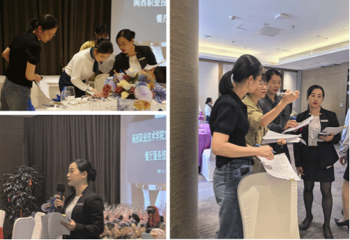 本次技能竞赛参赛选手精神饱满,在真实的工作环境中展现了良好的职业素养,用娴熟精湛的服务技能、规范标准的操作程序、富有创意的台面设计给大家呈现了一场视觉盛宴。