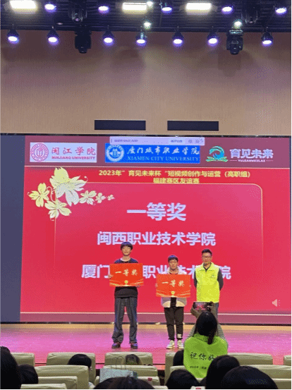 12月10日,2023年"育见未来杯"短视频创作与运营(高职组)福建赛区友谊赛在厦门城市职业技术学院落下帷幕。影视多媒体技术专业游婧敏、陈淑玲老师指导的刘思晴、吴培峰、陈涛、温莹莹团队在比赛中脱颖而出,以第一名的佳绩获得一等奖。
