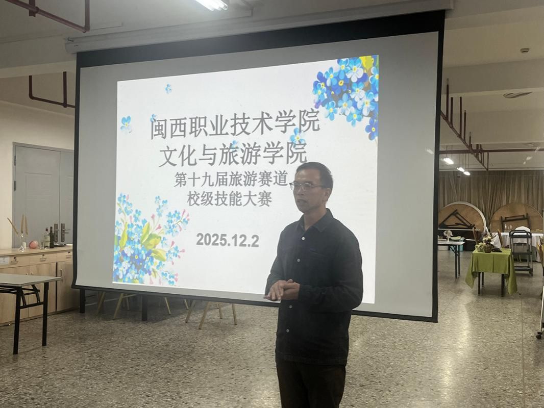 2025年12月2日,文化与旅游学院第十九届旅游赛道校级技能大赛在万源楼714餐厅实训室成功举办。大赛延续“以赛促学、以赛促教、以赛促改、以赛促建”目标,旨在提升学生的专业技能、职业素养与综合实践能力,深化产教融合与校企协同育人机制。