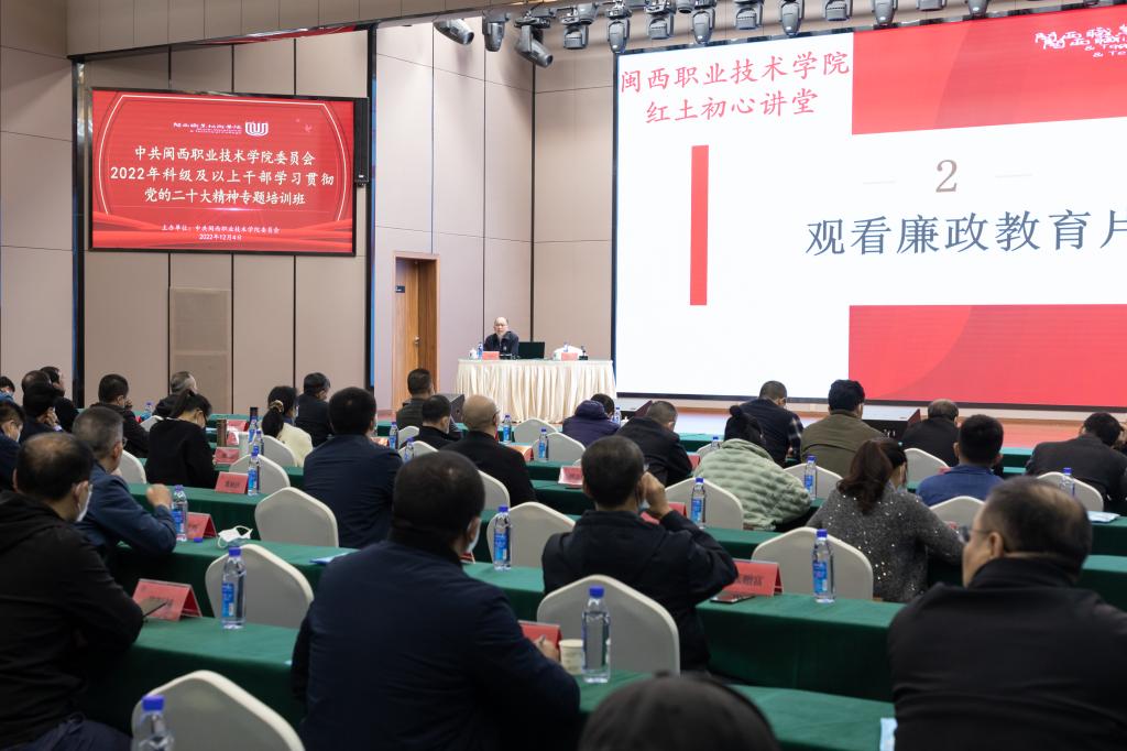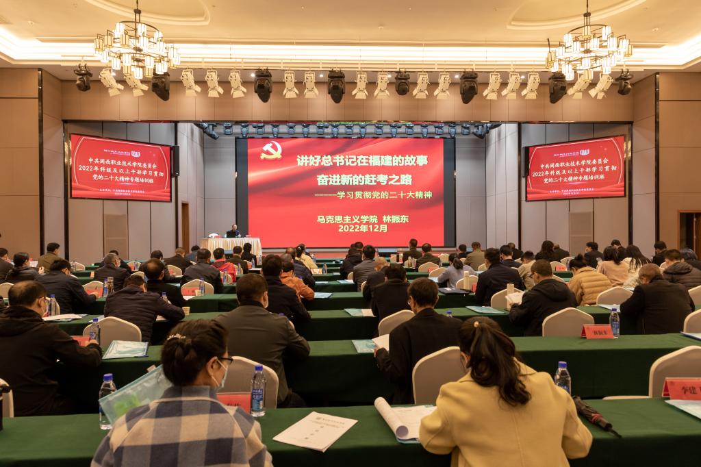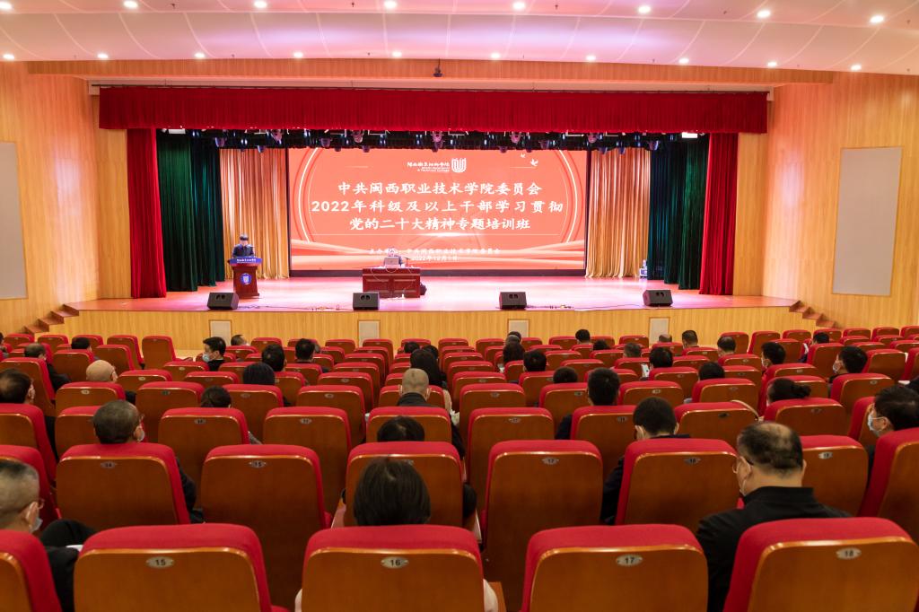 为进一步贯彻落实中共中央工作部署、省委及市委工作要求,深入学习宣传贯彻党的二十大精神,2022年12月1日至4日,学校党委举办了2022年科级及以上干部学习贯彻党的二十大精神专题培训班。