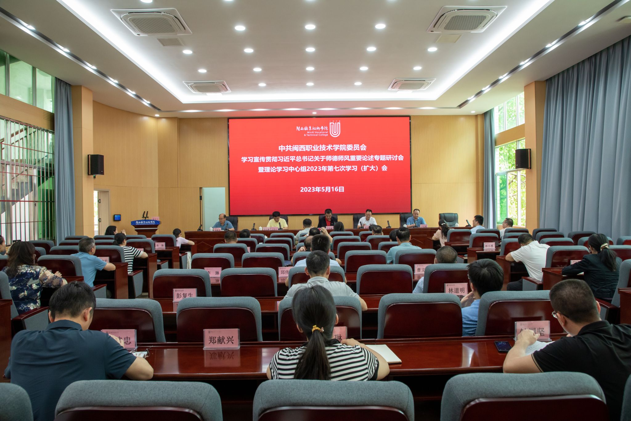 为深入学习宣传贯彻党的二十大精神和习近平总书记关于师德师风重要论述精神,拓展提升职教宣传周活动内容,全面打造“予生最好学校”。2023年5月16日下午,在协成楼二楼会议室,MG冰球召开学习宣传贯彻习近平总书记关于师德师风重要论述专题研讨会暨理论学习中心组2023年第七次学习(扩大)会,会议由校党委副书记李贞鑫主持。