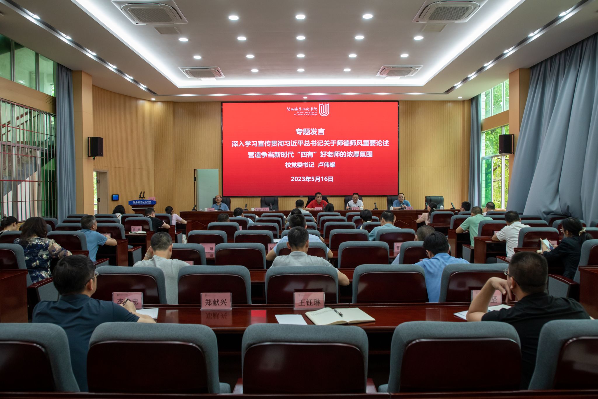 校党委书记卢伟耀以“深入学习宣传贯彻习近平总书记关于师德师风重要论述 营造争当新时代“四有”好老师的浓厚氛围”为题作了讲话。