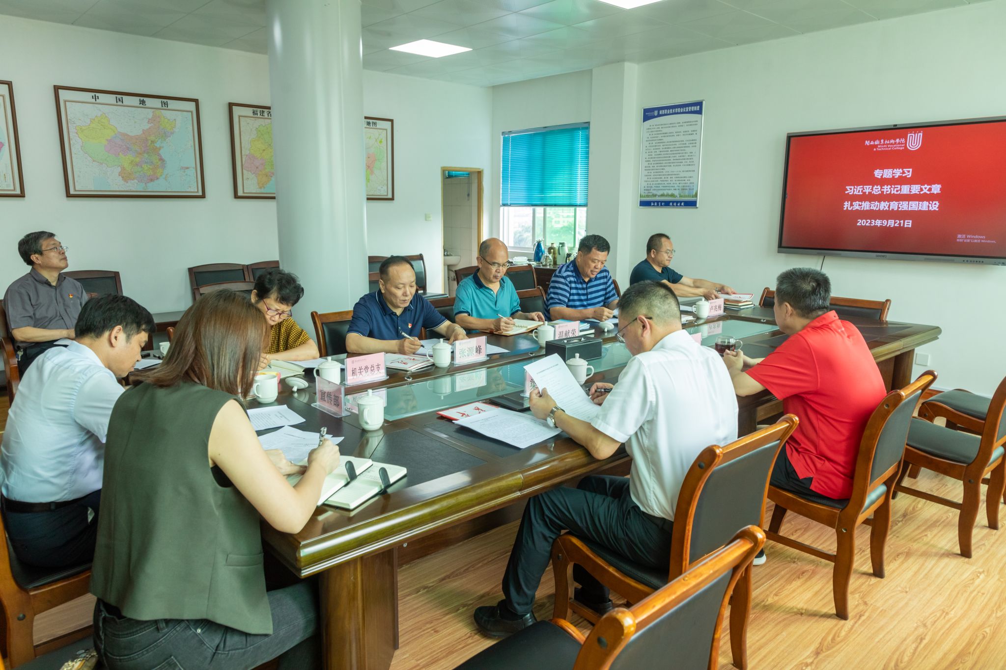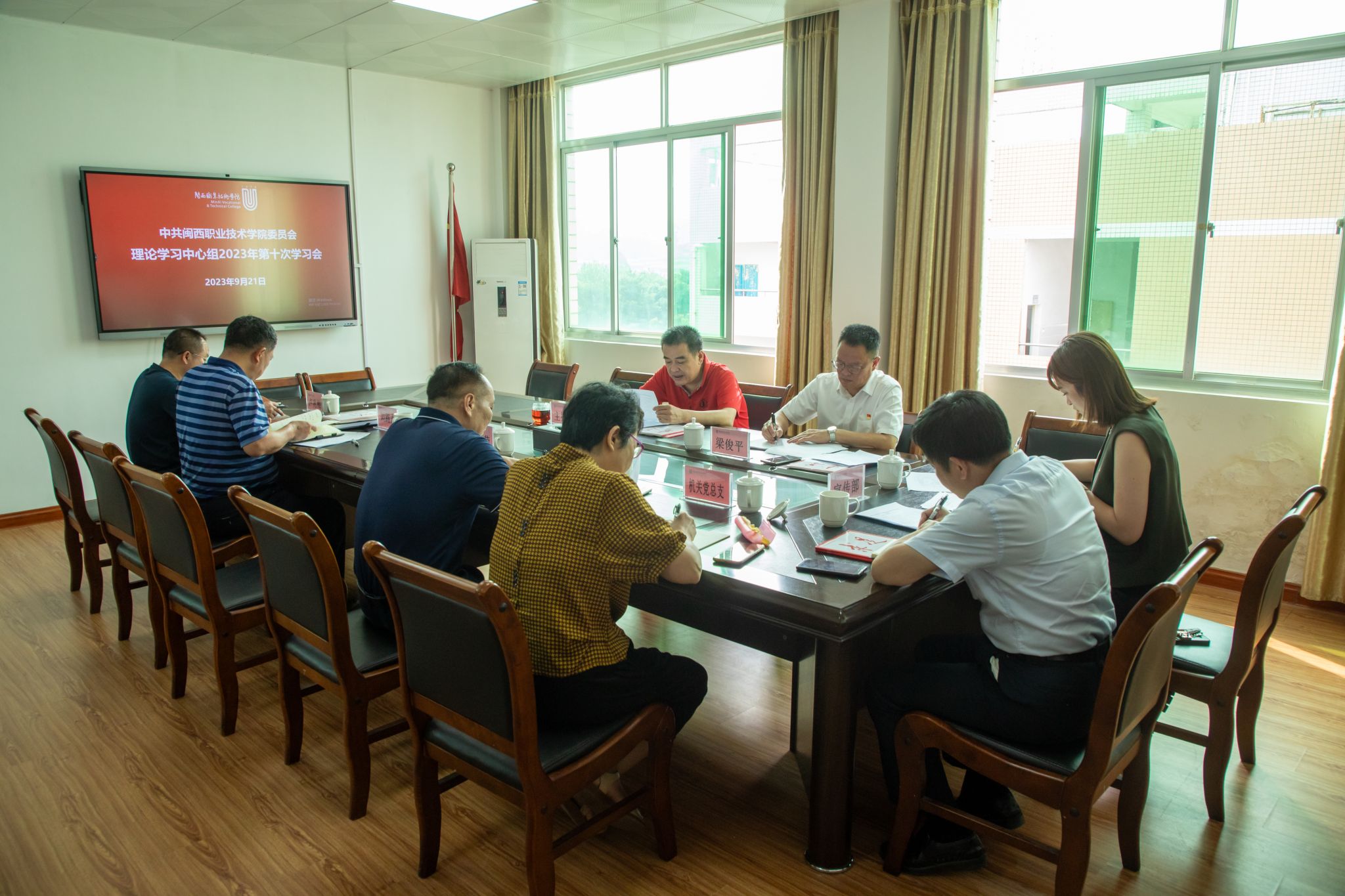 在做好会前自学研读的基础上,9月21日上午,校党委理论学习中心组2023年第十次学习会在六楼会议室召开,学习会围绕认真学习贯彻习近平总书记重要文章《扎实推动教育强国建设》、《在文化传承发展座谈会上的讲话》、《中国式现代化是强国建设、民族复兴的康庄大道》、《习近平总书记在中共中央政治局第七次集体学习时发表的重要讲话精神》等,进行集中学习。学习会以习近平总书记致信全国优秀教师代表向全国广大教师和教育工作者致以节日问候和诚挚祝福、习近平总书记在全国生态环境保护大会上重要讲话精神、习近平总书记对网络安全和信息化工作作出重要指示、习近平在成都第三十一届世界大学生夏季运动会开幕式欢迎宴会上的致辞专题,开展学习研讨,专题学习中共中央办公厅、国务院办公厅印发《关于建立领导干部应知应会党内法规和国家法律清单制度的意见》通知精神。校党委书记卢伟耀主持学习会,校党委委员、副校长刘路永作“全面深入学习贯彻习近平强军思想 深化做好新时代大学生国防教育”专题发言,中心组成员围绕学习内容进行讨论交流,校宣传部部长、机关党总支书记列席学习会。