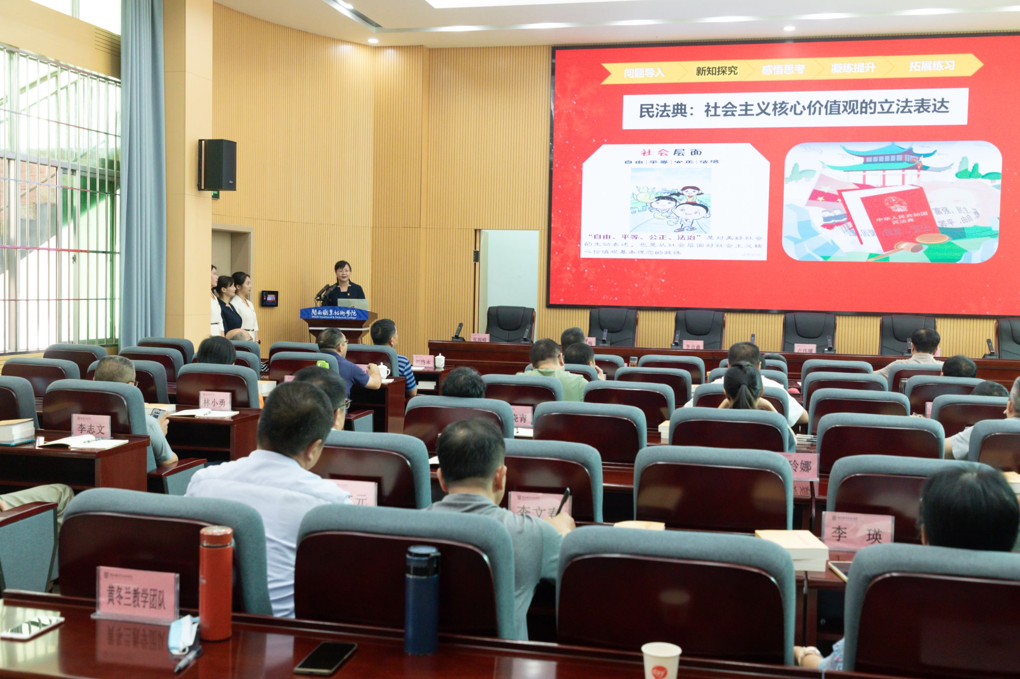 学思悟践,转化成果。在学思悟上下功夫,在转化运用学习成果上促落实,把对习近平总书记的深厚爱戴之情转化为干事创业的强大动力,着力于推进“双高校”建设、十四五项目建设、三教改革和治理能力提升,助力闽西革命老区高质量发展示范区建设取得新成效。