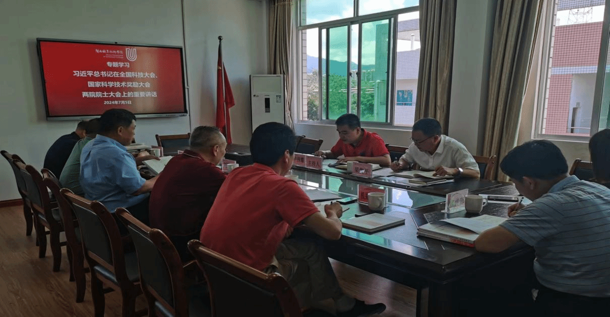 7月5日上午,校党委理论学习中心组2024年第九次学习会在六楼会议室召开,学习会认真学习习近平总书记在中共中央政治局第十五次集体学习时发表的重要讲话精神,认真学习习近平总书记在全国科技大会、国家科学技术奖励大会、两院院士大会上的重要讲话,认真学习习近平主席在和平共处五项原则发表70周年纪念大会上的重要讲话;专题学习研讨习近平总书记关于“一国两制”和推进祖国统一的重要论述,专题学习习近平总书记关于新闻舆论工作的重要论述,书面学习《推进新时代党的建设新的伟大工程》,书面学习《中华人民共和国预算法实施条例》。校党委书记卢伟耀主持学习会并作专题发言,中心组成员围绕学习内容进行讨论交流。